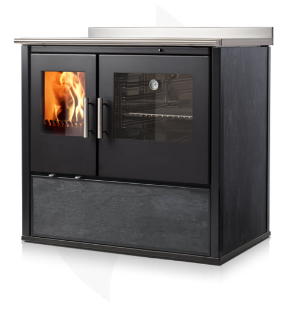 Cuisinière à bois avec revêtement en grès (chambre de combustion gauche ou droite)