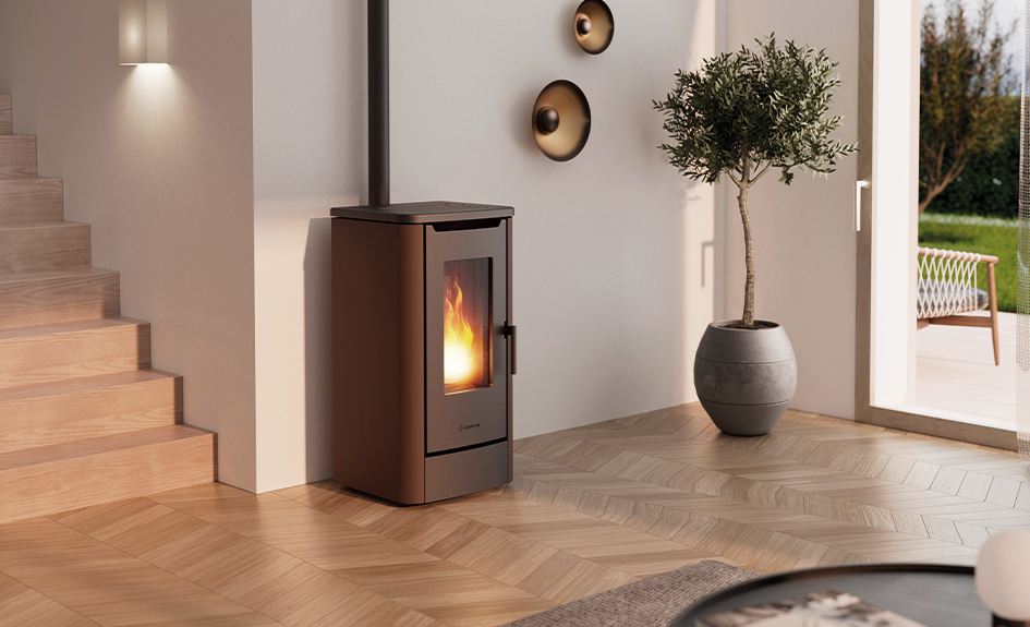 Poêle à pellets à convection naturelle, ventilé et canalisé. Puissance thermique: 3,1 - 8,4 kW.